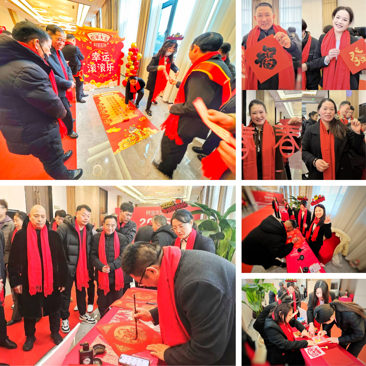 在年會正式拉開帷幕之前,洋溢著趣味與傳統(tǒng)文化魅力的新春游園會率先熱鬧開場。游園會精心策劃了多樣化的互動游戲,參與者可以通過游戲贏得福字并獲得參與手工藝制作的機(jī)會。其中,“滾滾樂”通過滾動道具給大家?guī)砑5臉啡ぃ?ldquo;幸運(yùn)大轉(zhuǎn)盤”則為大家提供了隨機(jī)獲取福字的驚喜;而“神箭手”射箭游戲不僅讓參與者體驗(yàn)了一把傳統(tǒng)射藝的魅力,還為他們額外爭取到了集福的機(jī)會。
